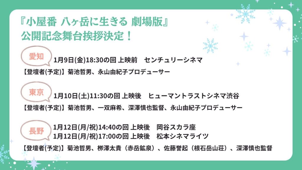 また、東京、名古屋、岡谷、松本では、公開記念舞台挨拶も決定いたしました!