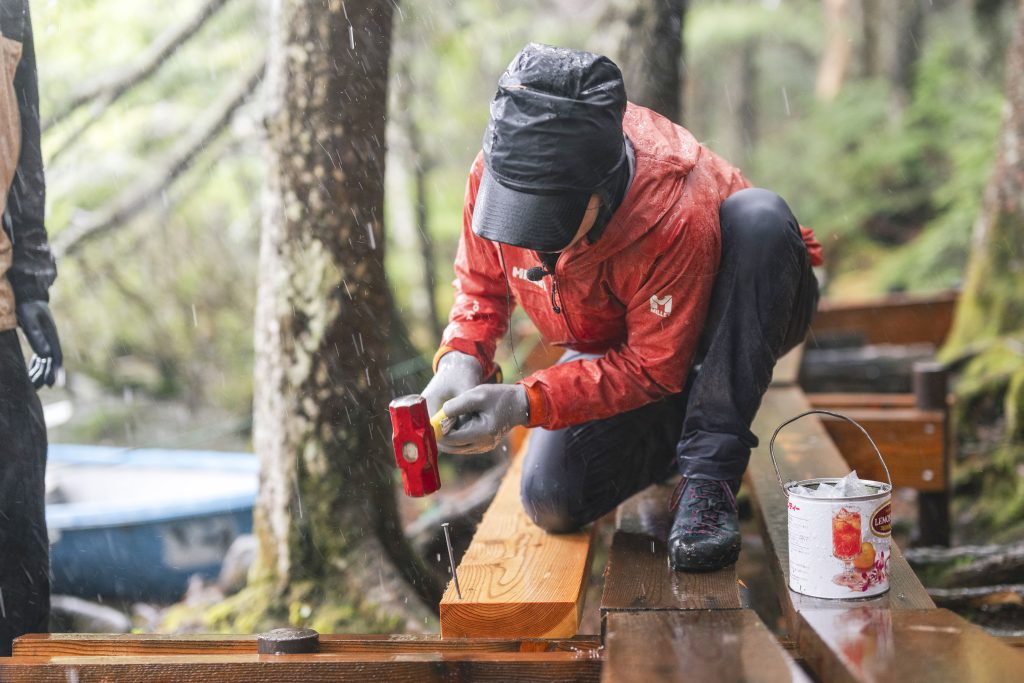 「最初はひとりで始めたんですが、やはりひとりだとどうしても1日にできる作業が限られてしまい、ボランティアの力をお借りするようになりました。ですが登山道整備は体力的な負担が大きく、一般の方にお願いするのは難しい部分があるため、山関連の企業様や山岳ガイドの方々など、ある程度体力のある方たちにボランティアをお願いしてきました。