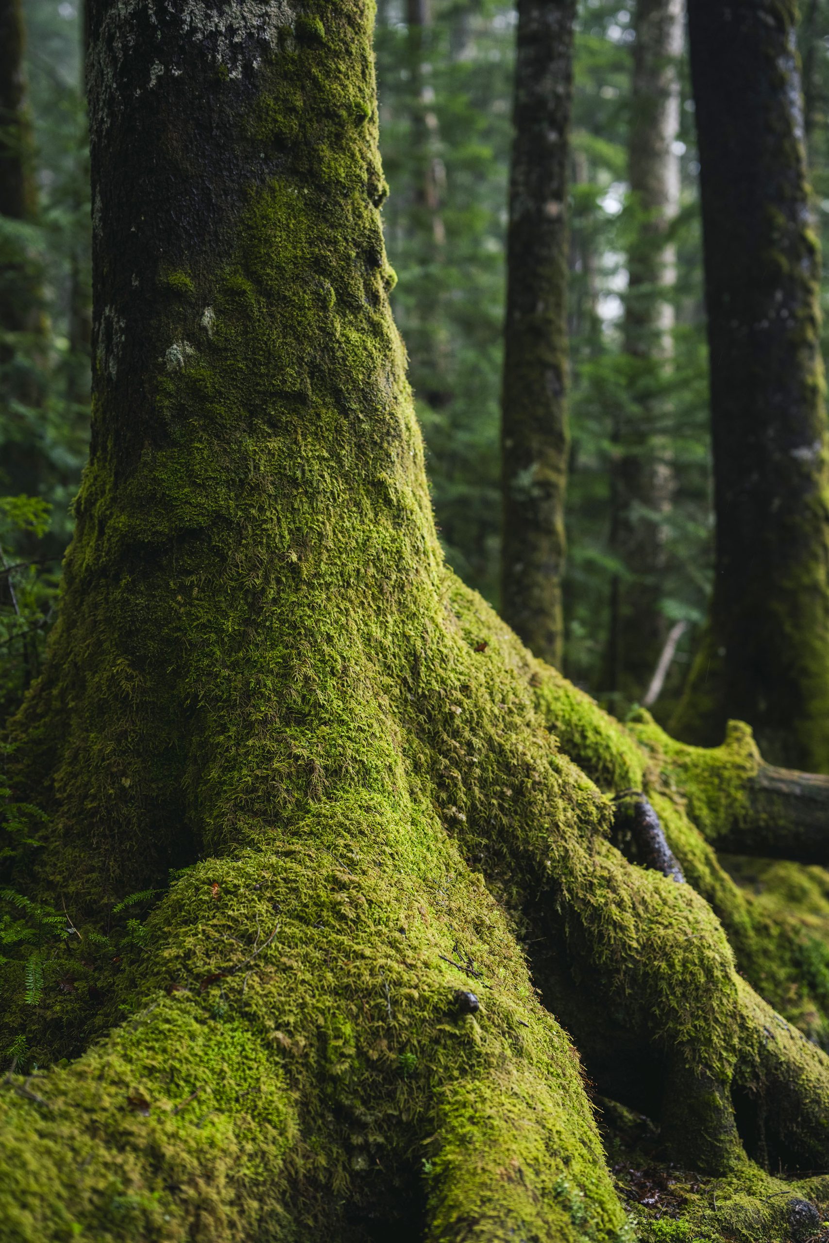 「30年前の白駒池周辺は岩だらけの土地で、木道ができるまで池一周は歩けなかったんですよ。このあたりは国定公園なので倒木でも勝手に切ることはできないため、私は営林署のOBの方に力を貸してもらって木道の整備を始めたんです。当初は丸太を番線で縛って木道を作っていましたが、丸太は歩きにくいので板を敷く形に変更していきました。このような活動を続ける中で当時私は行政に板などの材料や作業にあたる人を出して欲しいといった要望を出すと共に、この地が持つ価値を伝え、行政との連携を深めていきました。白駒池の木道は、ただ歩きやすいだけではなく『自然を守る』という大切な役割を果たしています。たとえば木は普通下に向かって根を張らしますが、この辺りは岩だらけで根を下に伸ばしても養分が取れないので、岩と岩の間の苔が作った腐葉土に根を張っています。そのため木の根が横に伸びているので、もし、木道がなければ根が登山者に踏まれて木はやがて枯れてしまいます。登山というのは山の中に入っていく行為ですから、自然に負荷をかけないようにすることを考えなければいけません。以前”ここに小屋がなければ、もっと自然が壊れなくていい”と言われたことがあります。でも、私たちは小屋番として山の中に入っているからこそ、自然を守り育て、いかに『負荷をかけずに共存していくか』ということを考え、行動しているのです」と山浦清さんは話してくれました。白駒池周辺は519種類の苔が生息する神秘的な苔の森が広がる場所であり、日本蘚苔類学会から『日本の貴重なコケの森』に選定されています。山浦さんをはじめとする周辺山小屋関係者のみなさんやボランティアとして登山道整備に携わってくれている方々、そして行政からの補助金などのサポートにより、この地の価値は守られ、その魅力は広く知られるようになりました。